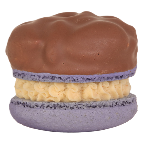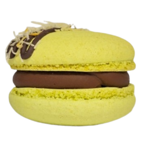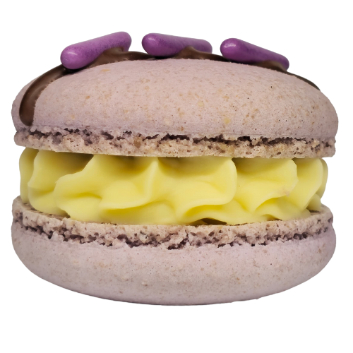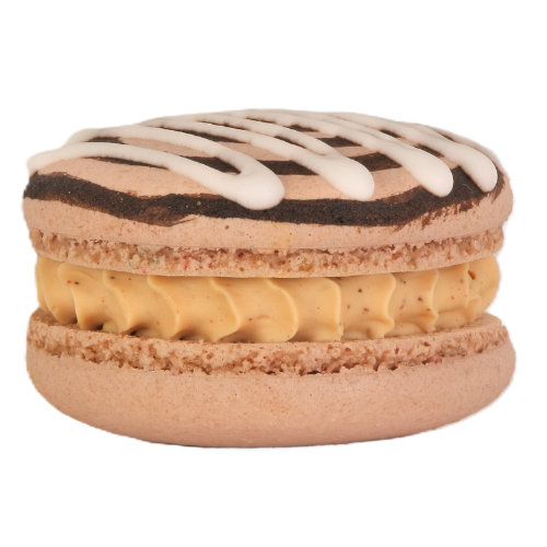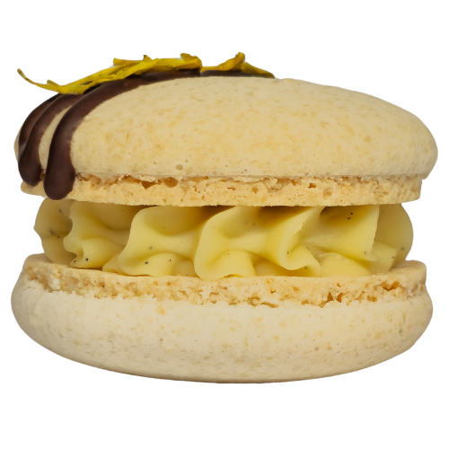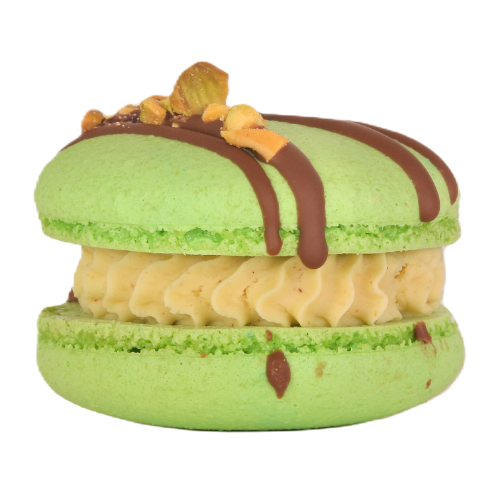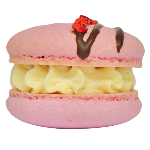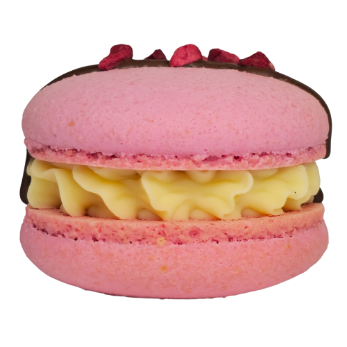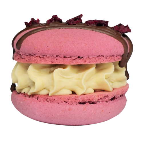 Vibrant pink shells filled with a smooth raspberry cream, topped with a dark chocolate drizzle and ruby-red berry pieces. Fruity, tangy, and perfectly balanced with chocolate, this macaron is a refreshing classic with a luxurious twist. Ideal for gifting, afternoon tea, or whenever you crave something bright and elegant.